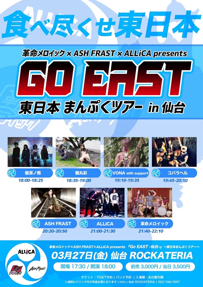 【出演】ASH FRAST / 革命メロイック / ALLiCA / コバラヘル / 鶴丸彩 / 催涙ノ雨 / VONA with support